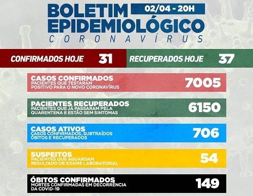 Com mais 31 confirmações, Campo Mourão chegou nesta sexta-feira a 7.005 casos de covid desde o início da pandemia. Os recuperados foram 37 e o número de moradores com o vírus ativo caiu para 706. O número de suspeitos é 54, o menor em muito tempo. As más notícias do dia são mais duas mortes (total de 149) e a UTI do SUS que voltou a ficar superlotada (taxa de 108%).