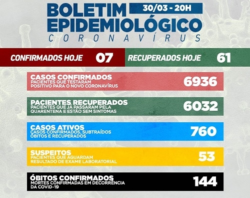 O boletim desta terça-feira mostra, mais uma vez, queda nos casos de covid-19 em Campo Mourão. Foram confirmados apenas sete novos casos, com 61 recuperações. O número de moradores com o vírus ativo caiu para 760 e o de casos suspeitos para 56. De ruim, o boletim trouxe a confirmação de mais três mortes por covid - 41, 59 e 71 anos. Além disso, a UTI SUS continua com todos os leitos ocupados.