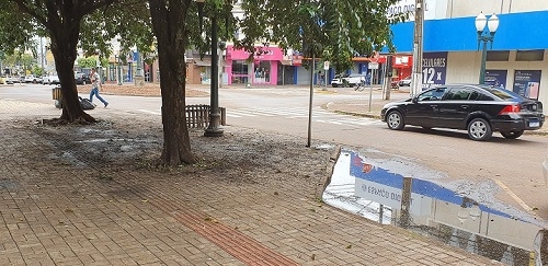 "Esquina do antigo HSBC, nojeira pura em pleno centro de Campo Mourão. Mau cheiro pelas fezes dos pássaros e água parada. Cadê os órgãos públicos?".