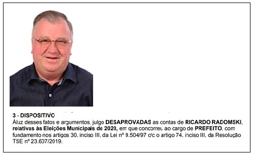 A Justiça Eleitoral desaprovou as contas de campanha do prefeito de Mamborê, Ricardo Radomski.