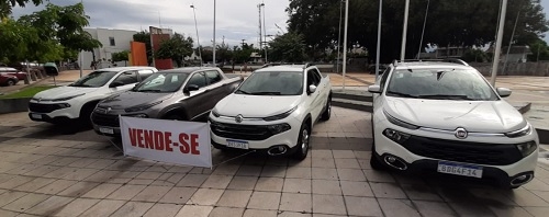 A prefeitura de Ubiratã colocou quatro carros em frente ao paço municipal com uma placa de "vende-se".