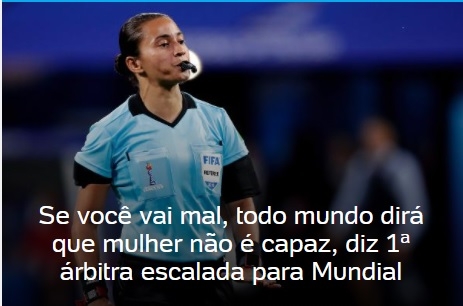 Olha quem está em destaque na página da abertura do UOL desta segunda-feira. É a árbitra Edna Alves, de Goioerê, que concedeu entrevista à colunista Mônica Bergamo, da Folha de S. Paulo. Edna viajou para o Catar na quarta-feira passada, onde vai apitar o Mundial de Clubes. Foi antes porque precisa ficar uma semana em isolamento. Ela será a primeira mulher a trabalhar num mundial masculino da Fifa.