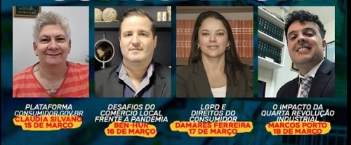 O Procon de Campo Mourão vai promover uma série de quatro lives para marcar a Semana do Consumidor. Começa nesta segunda-feira (19h) com a diretora do Procon Paraná. Cláudio Silvano vai falar sobre "Plataforma consumidor.gov.br. O presidente da Acicam, Ben-Hur Berbet, a advogado Dâmares Ferreira e o promotor Marcos Porto Soares são os outros convidados. Começa sempre às 19h, pelo Facebook.