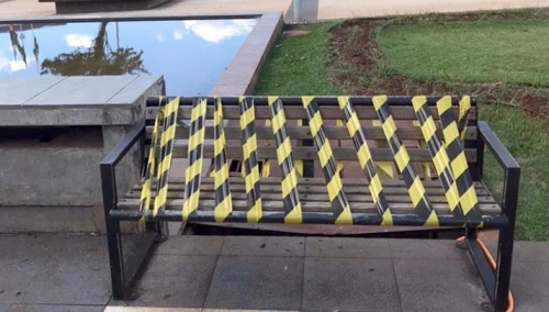 A prefeitura interditou todos os bancos de praças de Ubiratã. O objetivo é evitar aglomerações. Os bancos são cercados com fitas que sinalizam que nesses locais as pessoas não podem ficar paradas, mesmo que sejam para um pequeno descanso. Ubiratã já teve 1.046 casos confirmados e 22 mortes causadas pela covid-19.