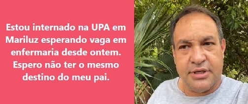 Padre Marinaldo Batista, que já foi padre na catedral São José (Campo Mourão), em postagem em rede social, nesta terça-feira. Na semana passada, o pai dele morreu com covid-19, esperando vaga em hospital. A mãe e um irmão do padre foram internados na UTI em Sarandi, também com covid. A família do padre mora em Mariluz.
