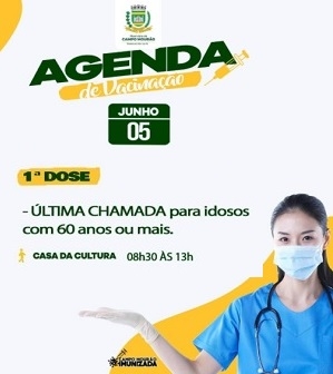 Você mora em Campo Mourão, tem mais de 60 anos e ainda não recebeu nenhuma dose da vacina contra a covid-19? Então, desperta para a vida que a Secretaria de Saúde marcou a "última chamada". Será no próximo sábado, das 8h30 às 13h, na Casa da Cultura. A programação completa da semana está na página da prefeirura nas redes sociais.