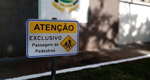 Do que será que estavam passando sob a marquise da prefeitura de Campo Mourão a ponto de precisar colocar uma placa avisando que ali é passagem de pedestre?