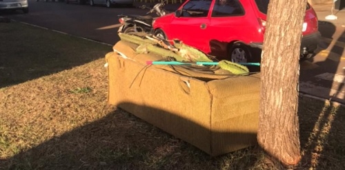 "Se alguém tiver precisando de um sofá em "bom estado", pode buscar no canteiro central da av. Capitão Índio Bandeira, perto do colégio Adventista".