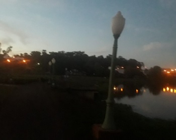 Iluminação do Parque do Lago toda apagada por volta das 19h desta quarta-feira.