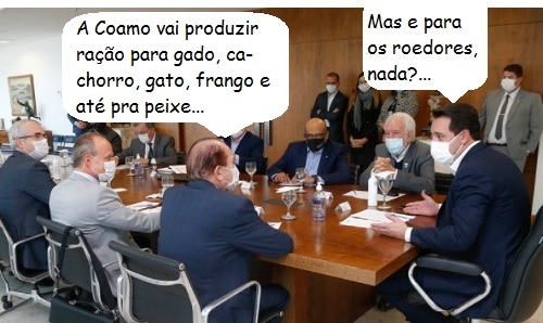 Olha aí mais um clic da audiência que diretores da Coamo tiveram na terça-feira com o governador Ratinho Jr. Foi para falar do fábrica de ração da cooperativa, cujas obras devem começar ainda este ano, em Campo Mourão. Entre os presentes, o presidente do Conselho de Administração, José Aroldo Gallassini, e o presidente executivo da Coamo, Airton Galinari.