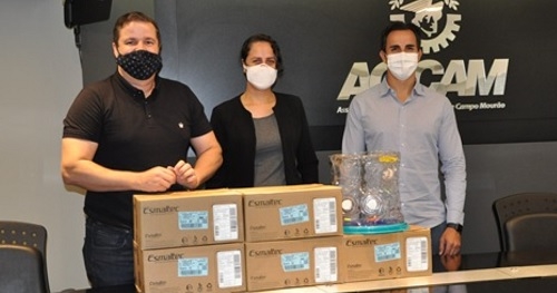 A Acicam repassou nesta quarta-feira cinco capacetes respiratórios para a Santa Casa de Campo Mourão. O equipamento atende pacientes com covid-19 e foi comprado com recursos próprios da entidade. A entrega foi feita pelo presidente da Acicam, Ben-Hur Berbet, ao presidente do hospital, Pedro Montans Baer. A superintendente da Santa Casa, Lucinéia Scheffer, também participou.