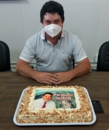 O prefeito de Farol, Oclécio Menezes, fez aniversário no fim de semana. Na prefeitura, nada de festa. Em tempo de pandemia não dá. A data, no entanto, não foi esquecida, não. O prefeito ganhou um bolo personalizado com a foto dele. Não tinha as velinhas, mas Boca Santa entrega: Oclécio completou 52 anos...