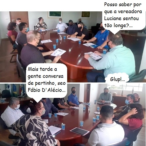 Os cliques são de Ubiratã, onde o prefeito Fábio D"Alécio se reuniu nesta terça-feira com os nove vereadores do município. Foi para apresentar o PAE - Planejamento de Ações Estratégicas. Entre os "nobres edis" estava Luciane Munhos D"Alécio, que é casada com o prefeito. Ah, digamos que para ela foi apresentado o PAE - Prometo Amor Eterno...