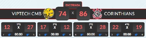 Campo Mourão começou mal e o Corinthians abriu 15 pontos de vantagem no primeiro quarto. Os mourãoenses reagiram e chegaram a vencer dois dos três quartos seguintes, mas não deu para virar, não. Vitória corintiana pelo NBB por 86 a 74. Campo Mourão foi a 15 jogos sem vitórias. Próxima partida neste sábado (19h), contra Fortaleza. Depois restará a despedida contra o Pinheiros (segunda, às 14h). Todos os confrontos são em Brasília.