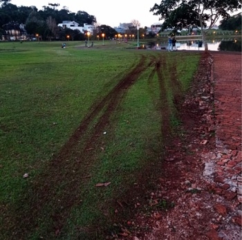 Parque do Lago de Campo Mourão no fim da tarde deste sábado.