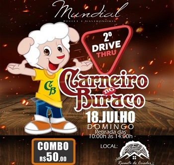 Festa do Carneiro no Buraco em julho, por conta da pandemia, nem pensar. O prato típico de Campo Mourão, no entanto, está garantido pelo sistema drive thru. Será servido no dia 18 com retirada no Recanto do Criador, das 10h às 14h. O combo custa R$ 50. Vem arroz, salada, pirão e, claro, o carneiro.