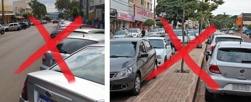 "Esse tipo de vaga de frente para o meio fio está irregular porque deixa a pista de rolamento mais estreita que o padrão do sistema viário".