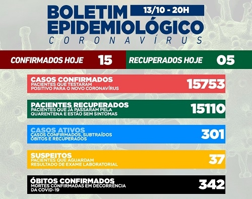 Campo Mourão confirmou 15 novos casos de covid-19 nesta quarta-feira, Os recuperados foram cinco. O número de moradores com o vírus ativo voltou a passar dos 300 (301). Na ala covid as internações caíram para 14, sendo seis na unidade de terapia intensiva. Taxa de ocupação de leitos: 42% na enfermaria e 25% na UTI SUS.