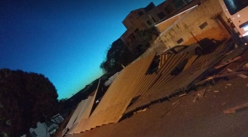 Caiu nesta quarta-feira à noite a cobertura da garagem da Secretaria de Saúde de Campo Mourão. Ninguém se feriu, mas houve danos em veículos, que estão no seguro. Segundo a prefeitura, o proprietário do imóvel já foi comunicado e terá que arcar com o prejuízo (o prédio é alugado).