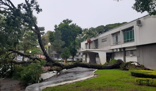 José Nogueira Marmontel Neto, professor, ao mostrar foto de árvore do pátio da prefeitura de Campo Mourão, que caiu durante o temporal da madrugada desta quinta-feira; em postagem no Facebook.