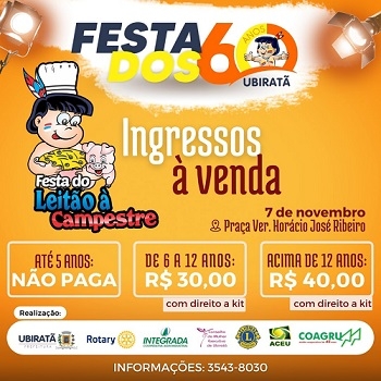 Vai encerrar as comemorações pelos 60 anos de Ubiratã.