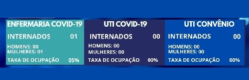 Não há nenhum paciente com covid-19 internado na UTI da Santa Casa de Goioerê. Nem pelo SUS, nem por convênios. É o que mostra o boletim divulgado nesta quara-feira pela Secretaria da Municipal de Saúde. É a primeira vez que isso acontece deste que a unidade foi inaugurada, em julho do ano passado. Na enfermaria há apenas uma internação devido à covid (5% da ocupação de leitos).