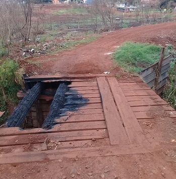 Colocaram fogo na ponte que liga o conjunto Fortunato Perdoncini ao jardim Bandeirantes, em Campo Mourão.