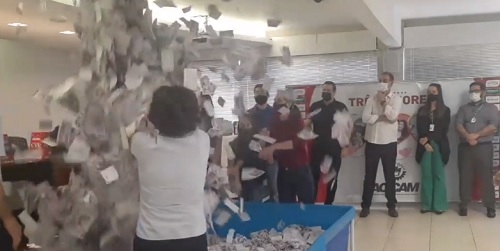 Eliana dos Santos Rodrigues, que concorreu com cupom que recebeu da sorveteria Soft. Ela foi a ganhadora da moto 0 km sorteada pela campanha "Meus três amores", da Acicam. O sorteio fo nesta quinta-feira. Cerca de 1,5 milhão de cupons estavam concorrendo. Detalhe: A vencedora só foi conhecida na terceira tentativa. Nas duas primeiras, os cupons sorteados não estavam preenchidos corretamente.