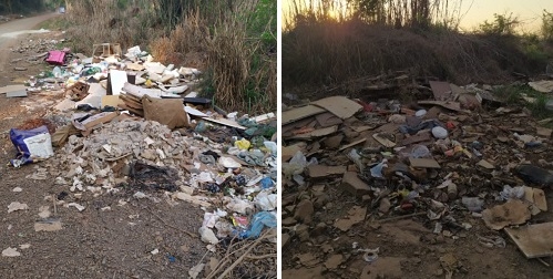 "Estradinha de terra nos fundos do jardim Sol Nascente. Um lixão a céu aberto. Cada dia mais entulhos despejados por lá".
