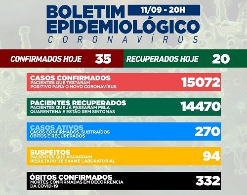 Em 11 dias, setembro registrou 279 novos casos de covid-19 em Campo Mourão, média de 25,3 por dia. Aumentou em relação a agosto, quando a média diária ficou em 17,5. Neste sábado foram mais 35 casos, com 20 recuperados. O número de moradores com o vírus ativo subiu de novo e foi para 270 (tinha caído para menos de 200).