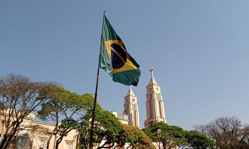 Um guindaste foi usado na praça São José para o hasteamento de uma gigantesca bandeira do Brasil. O evento em Campo Mourão foi batizado de "chamada patriótica" e o público presente era chamado de "patriotas". Entre os presentes, muitos bonés com a inscrição "Bolsonaro 2022", numa alusão à reeleição do presidente Jair Bolsonaro na eleição do ano que vem. Nos carro, vários adesivos de "Supremo é o povo".