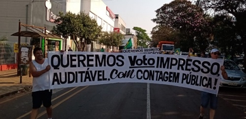 Um banner no carro de som anunciava como "traidores do povo" os deputados que votaram contra o voto impresso. O ex-prefeito de Campo Mourão, Rubens Bueno, era o primeiro nome da lista.