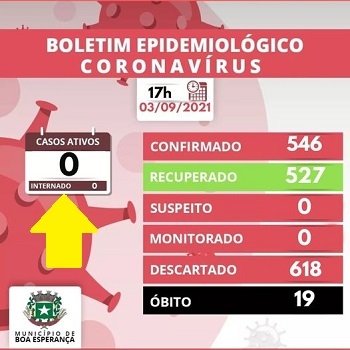 A região tem uma nova cidade sem casos ativos de covid-19. Trata-se de Boa Esperança, que "zerou" nesta sexta-feira. O município teve 546 moradores contaminados desde o início da pandemia, sendo que 527 se recuperaram e 19, infelizmente, morreram. Boa Esperança não tem, nesta sexta-feira, ninguém sequer com suspeita ou sendo monitorado. A outra cidade "zerada" da região é Moreira Sales.