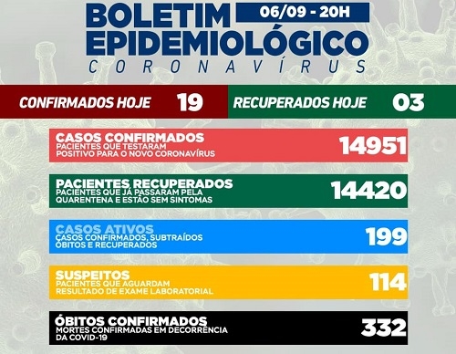 Mais 19 casos de covid-19 foram confirmados nesta segunda-feira em Campo Mourão. Os recuperados foram três e o número de vírus ativo subiu para 199. Nos hospitais, são 20 as internações na ala covid, sendo oito na unidade de terapia intensiva. A taxa de ocupação de leitos está em 63% na enfermaria e 33% na UTI SUS. A UTI convênio continua vazia.