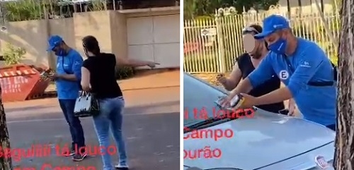 Viralizou em Campo Mourão, nesta terça-feira, o vídeo que mostra mulher reclamando, aos gritos, da cobrança da Zona Azul. Ela está na rua Brasil, perto da prefeitura. "Chama a polícia, manda me prender, faz qualquer coisa, mas eu não pago. Isso é um roubo", frisou. "A gente paga tanto imposto na m... dessa cidade e não tem direito nem de deixar o carro aqui?", completou. O agente da Pare Azul coloca a notificação do parabrisa do veículo e se retira do local.
