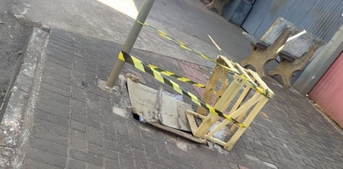 Na av. Ney Braga tem buraco na calçada, mas já sinalizado.