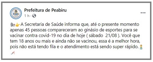 "Das 8h até até acabarem as doses", frisou postagem em redes sociais.