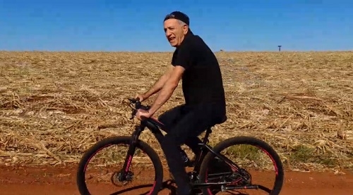 Milton Luiz Alves, prefeito de Campina da Lagoa, ao "confessar" que só andou "uns pedaços" no percurso do "Pedal Solidário" que foi realizado no município neste domingo. Alves tem 70 anos.