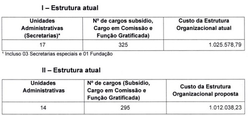 O custo desses cargos cai de R$ 1,025 milhão para R$ 1,012 milhão.