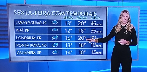 Se tem chuva em Campo Mourão, tem destaque no Jornal Nacional. Exibido nesta quinta-feira na previsão do tempo para esta sexta.