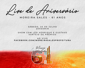 A prefeitura de Moreira Sales vai promover live nesta sábado (20h) em comemoração ao aniversário de emancipação.