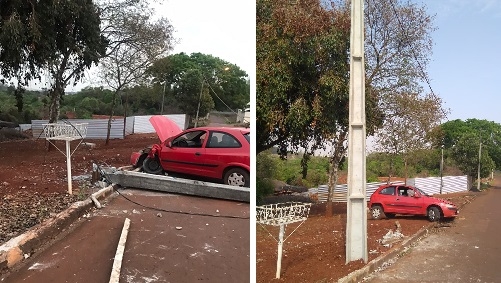O acidente que derrubou poste no jardim Parque das Acácias foi na sexta-feira. O poste foi arrumado e a energia elétrica restabelecida, mas o carro que causou o estrago segue no local neste domingo.