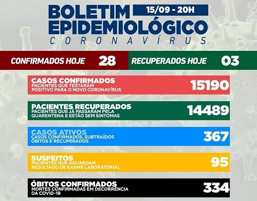 Duas mortes por covid-19 foram confirmadas nesta quarta-feira em Campo Mourão (homem de 50 e mulher de 71 anos). Isso não acontecia havia 17 dias. Houve mais 28 casos confirmados, com três recuperações. Os moradores com vírus ativo subiram para 367. A taxa de ocupação de leitos está em 42% na enfermaria e 79% na UTI SUS.