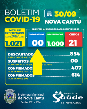 Nova Cantu não tem, no momento, nenhum morador com o vírus ativo da covid-19. O município "zerou" os casos nesta quinta-feira. São 1.021 casos desde o início da pandemia, com mil recuperados e 21 óbitos. O prefeito Airton Agnolin até gravou um vídeo. Agradeceu a Deus e ao pessoal da saúde, mas fez um alerta: "Nem por isso temos de acreditar que acabou tudo. Vamos continuar com os cuidados no dia a dia".