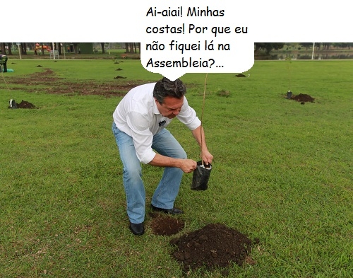 O clic é desta terça-feira, em São José dos Pinhais, onde o aconteceu evento em comemoração ao Dia da Árvore. O IAT vai plantar 400 mil mudas em todo o Estado durante a semana. E quem estava nesse evento simbólico era o secretário de Estado Márcio Nunes (Desenvolvimento Sustentável e Turismo). Teve que, literalmente, por a mão na massa, ou melhor, na terra...