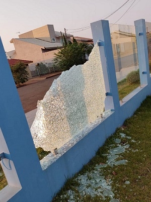 Júnior Garbim, prefeito de Engenheiro Beltrão, sobre vidro quebrado em frente a posto de sáude do município; em postagem em redes sociais.