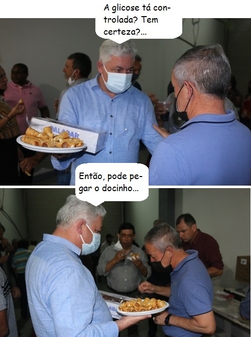 Os cliques são do Encontro de Líderes que o Cidadania realizou quinta-feira em Campo Mourão. Ao final do evento, comandado por Douglas Fabrício, o deputado serviu doces aos presentes. Nas fotos, ele serve o ex-prefeito de Araruna, Renato Toaldo. Ao fundo, o chefe do Procon, Sidnei Jardim, e o ex-prefeito de Mamborê, Nei Calori, já aparecem servidos pelo "deputado-garçom"...