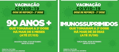 Podem ser imunizados os maiores de 90 anos que tomaram a segunda dose até 27 de março.