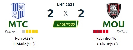 Campo Mourão e Minas empataram em 2 a 2 neste domingo pela ´Liga Nacional de Futsal.