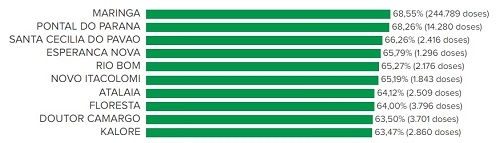 Maringá lidera o ranking, com 68,55%.